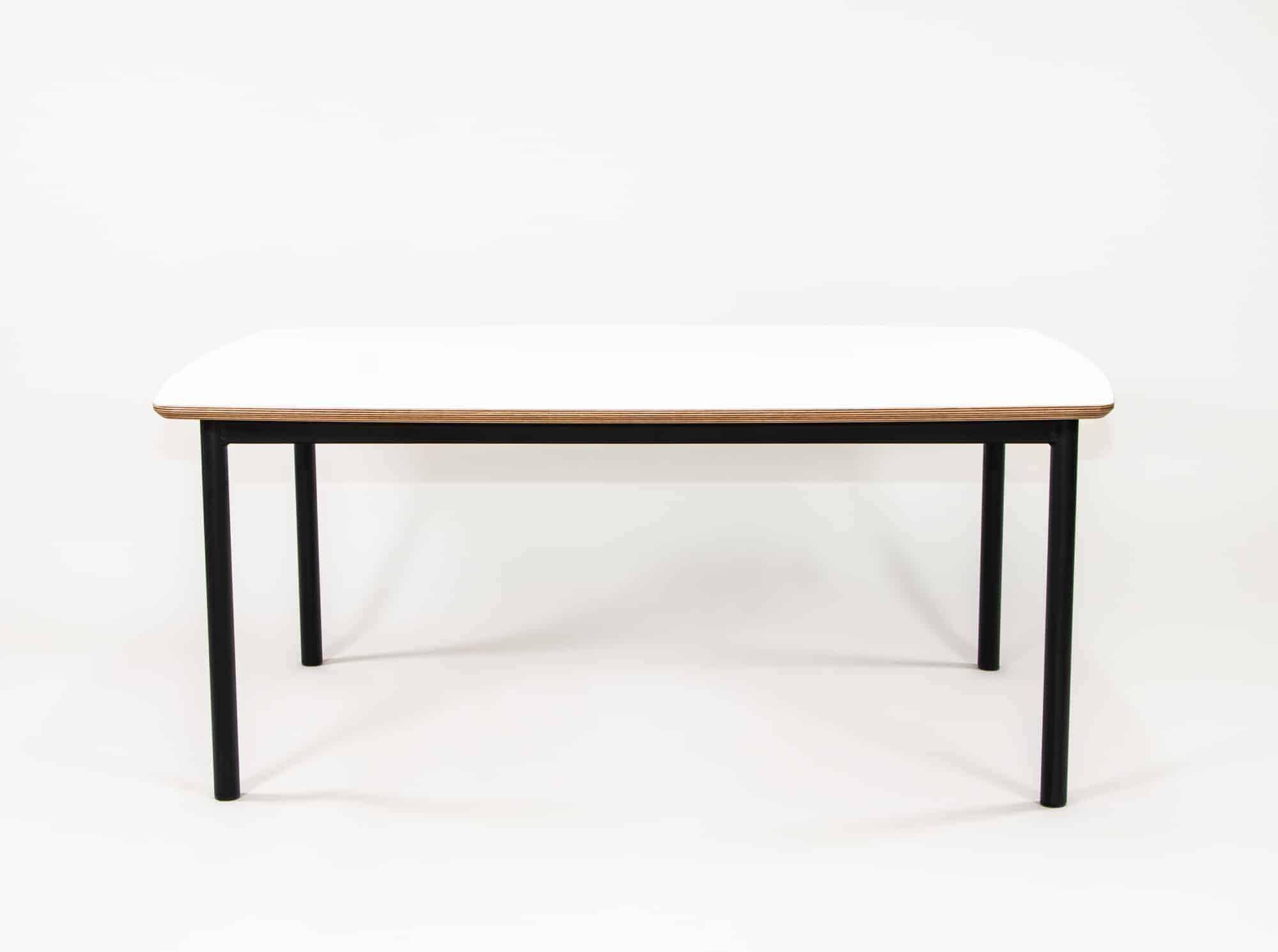 • Rectangle Table with white table top, ply edge and black powder coated steel frame.