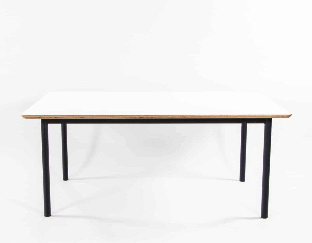 • Rectangle Table with white table top, ply edge and textura black powder coated steel frame