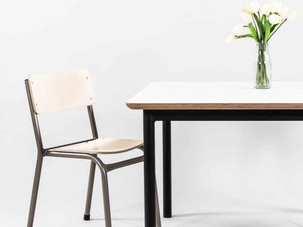 All table tops are made by our Starex craftsmen using high quality laminated European Birch plywood with a Ply edge. The material looks good, is durable and is easy to clean.