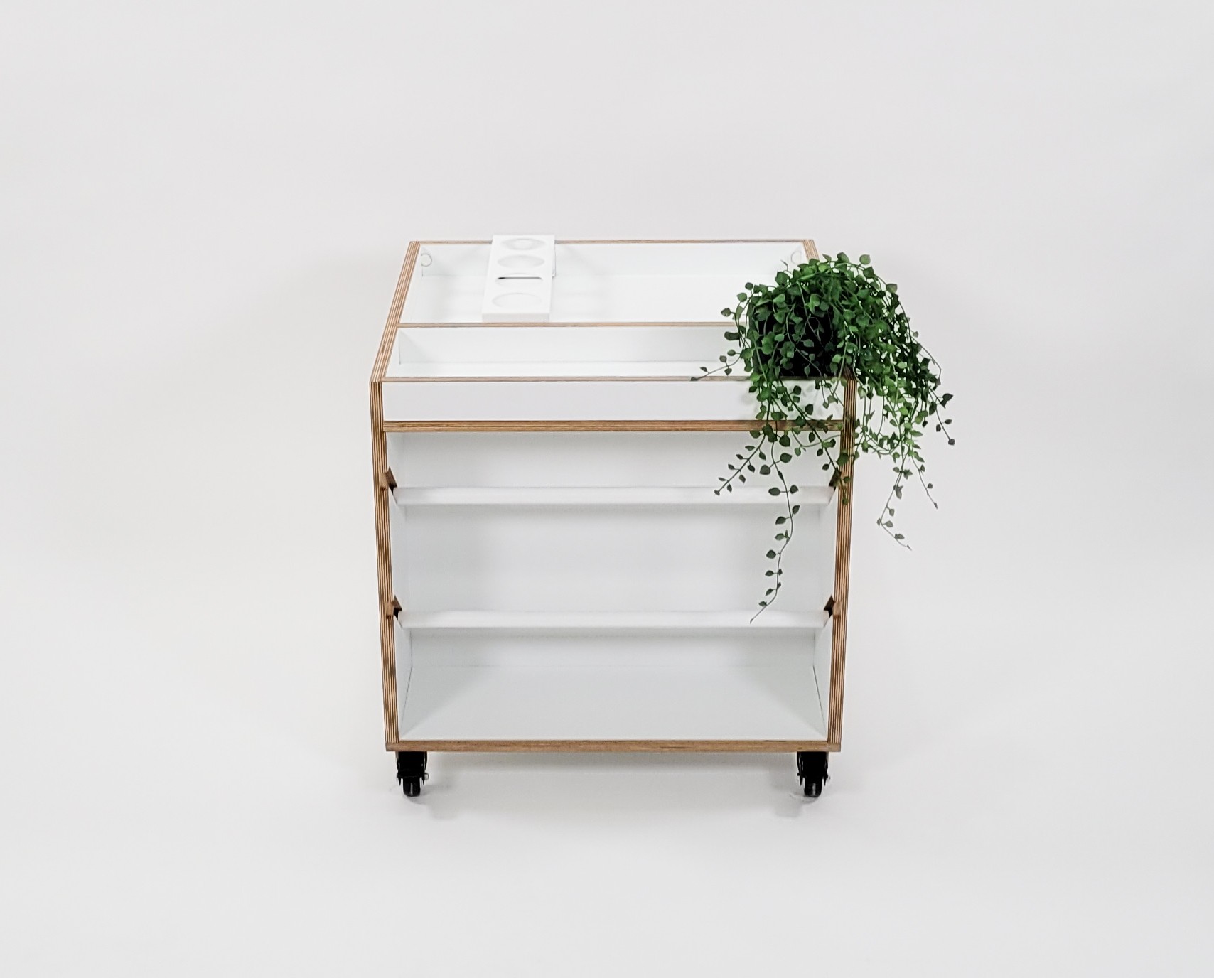 It is designed with a top tray, steel removable utensil holders and plywood shelves for storage of A4 & A3 paper.