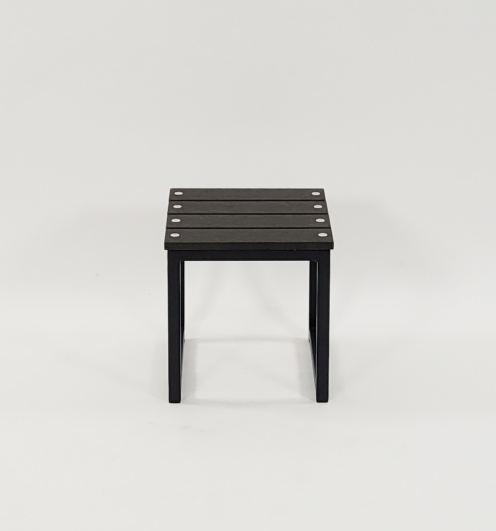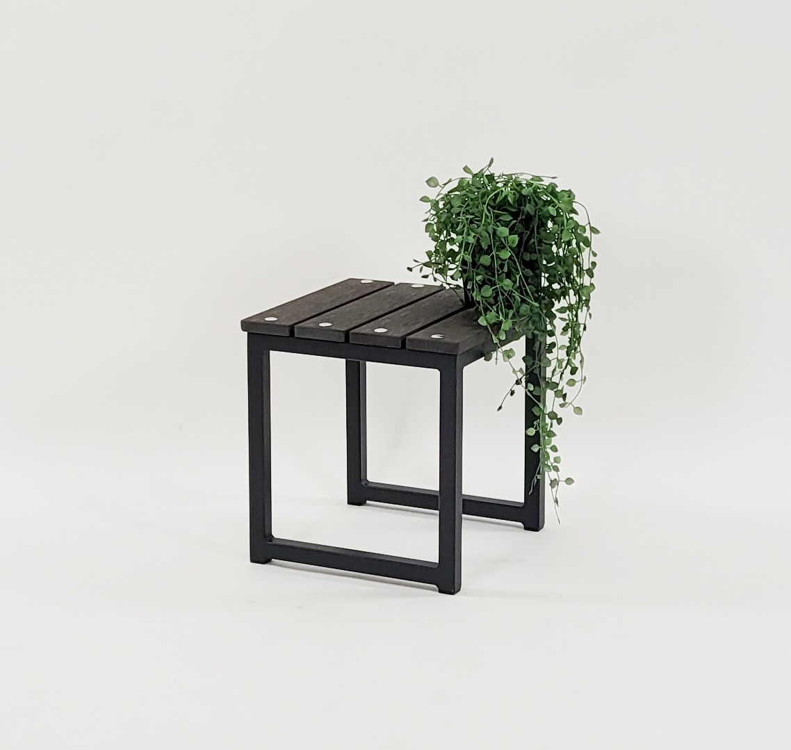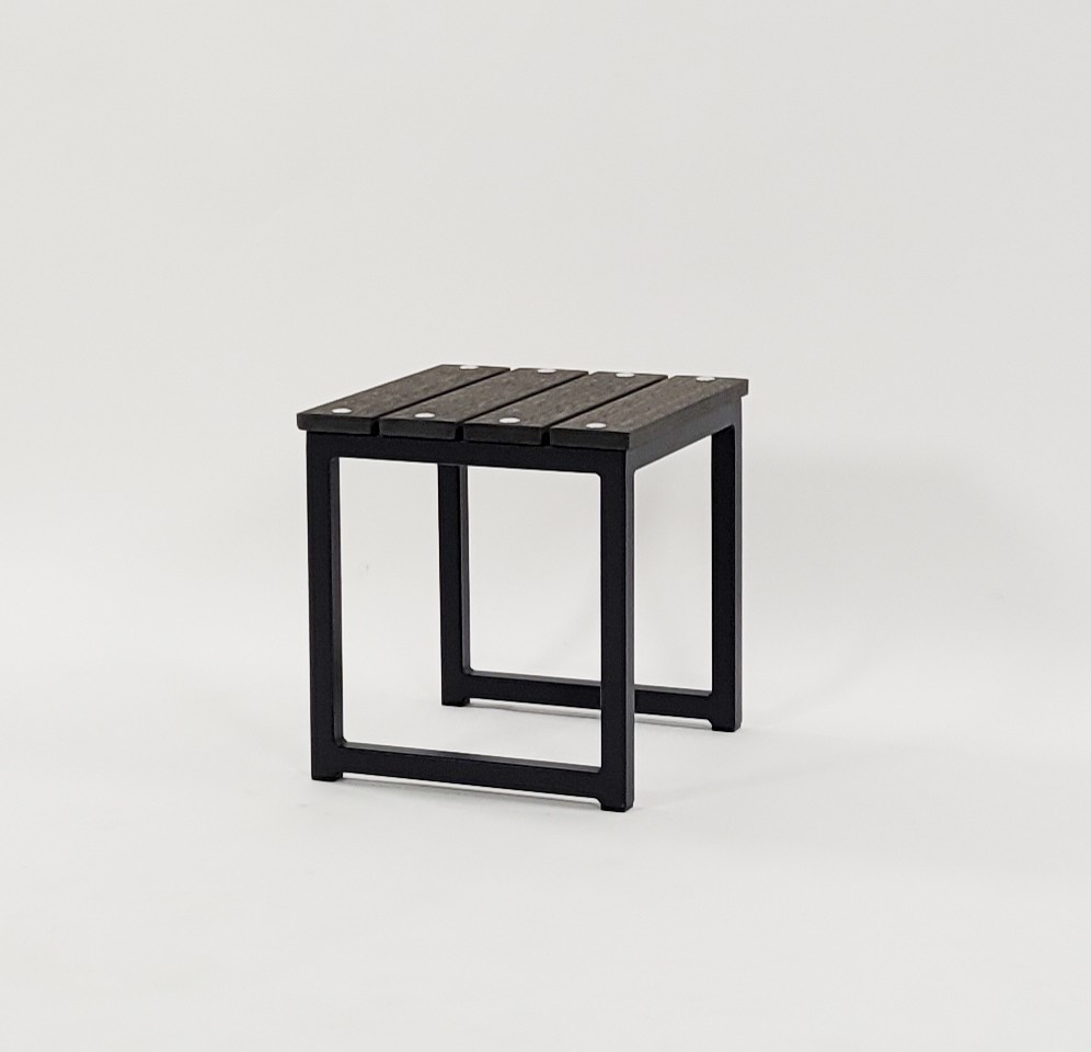 We manufacture this stool using galvanized powder coated steel for the frame and Futurewood for the Stool Top. Futurewood is a branded plastic wood composite made from 100% recycled materials – No ongoing maintenance required.