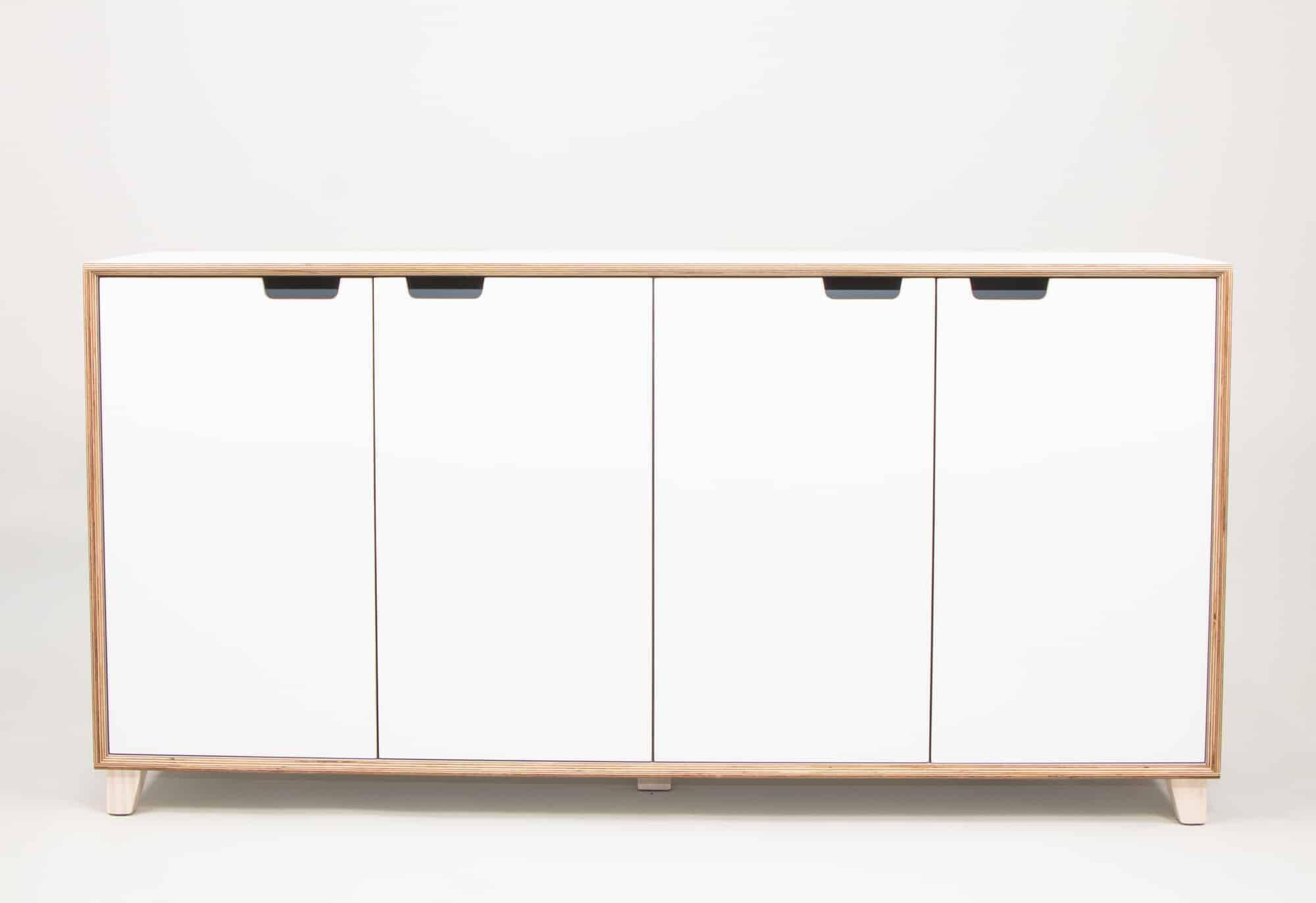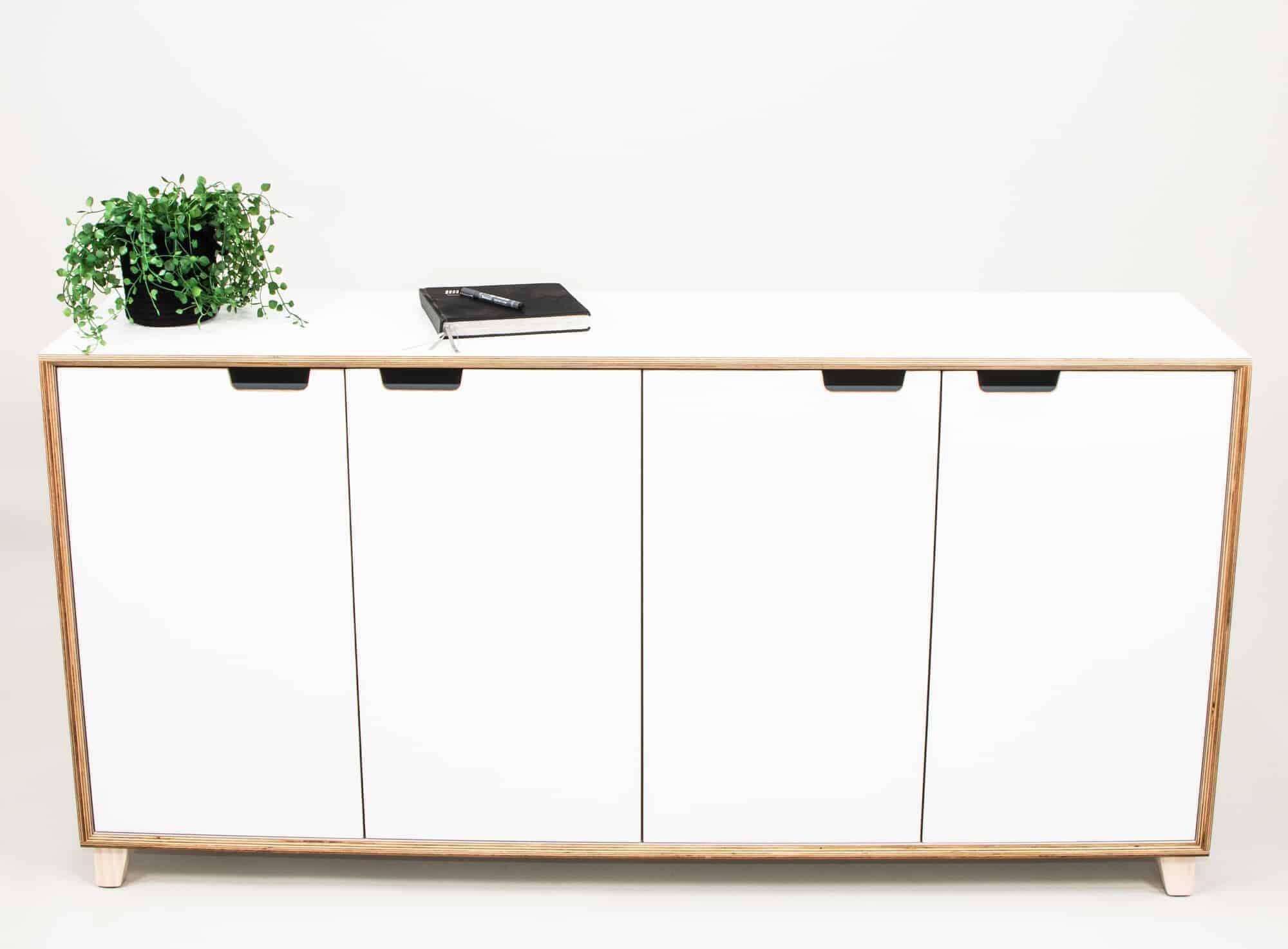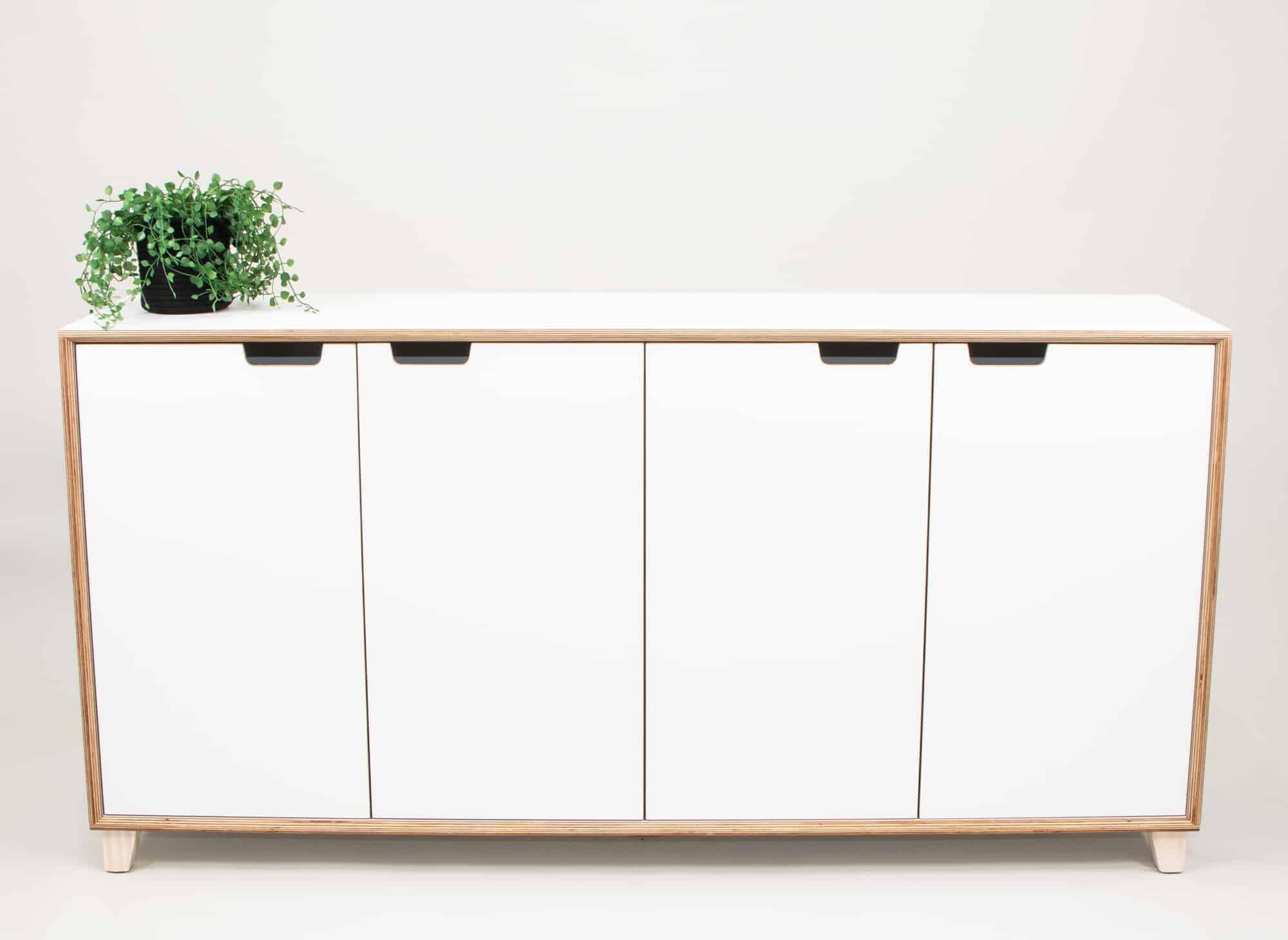 Credenza 1600L (4 cupboards) with white cabinet, doors/panels and feet