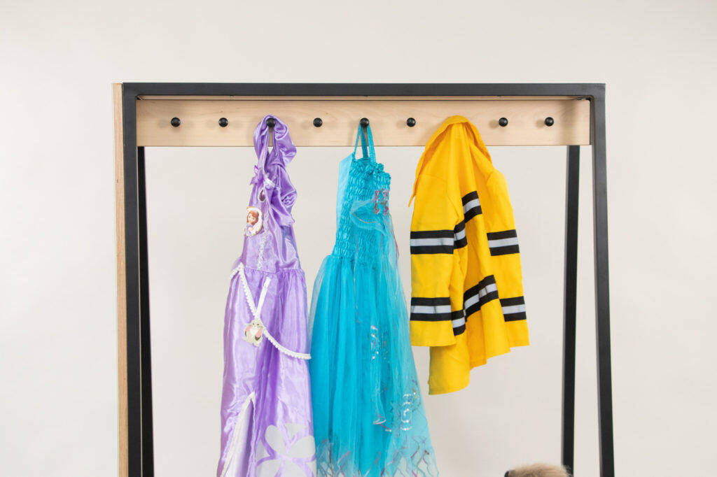 We LOVE the simplicity and affordability of this Dress up Stand with Mirror and 18 Hooks. Multi-functional for more than just dress-up areas.