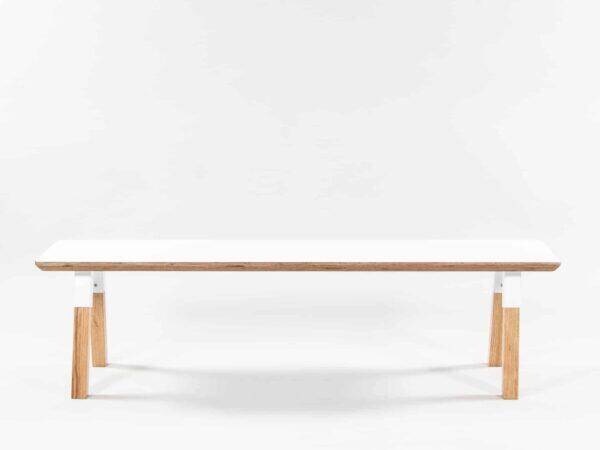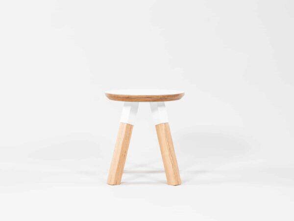 • maple seat and white powder coated steel