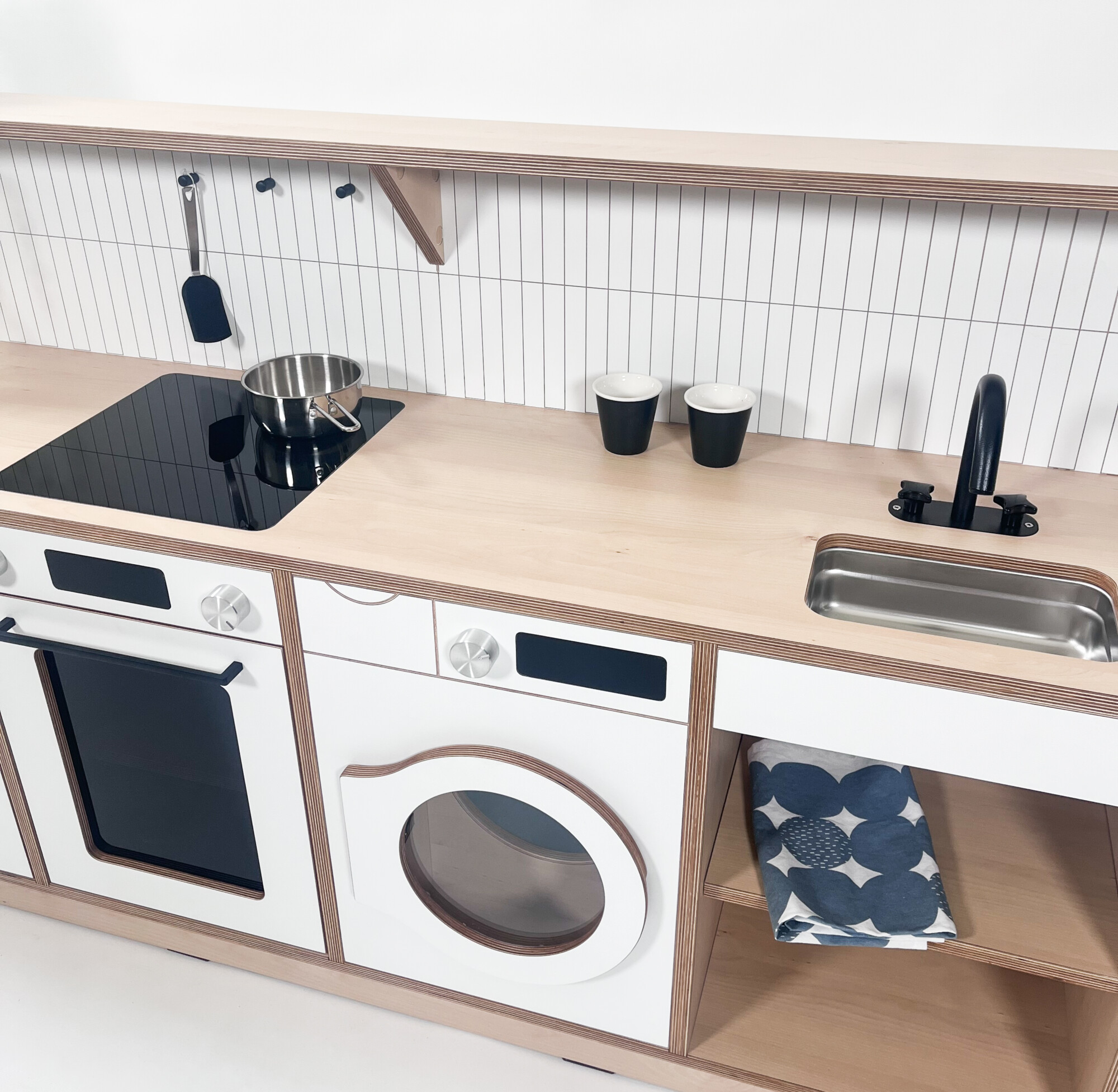 Thoughtfully crafted for children who love role play, this unit features interactive details, plenty of space for kitchen utensils and resources, and a beautifully detailed high splashback with our new, innovative Kit Kat tiling.