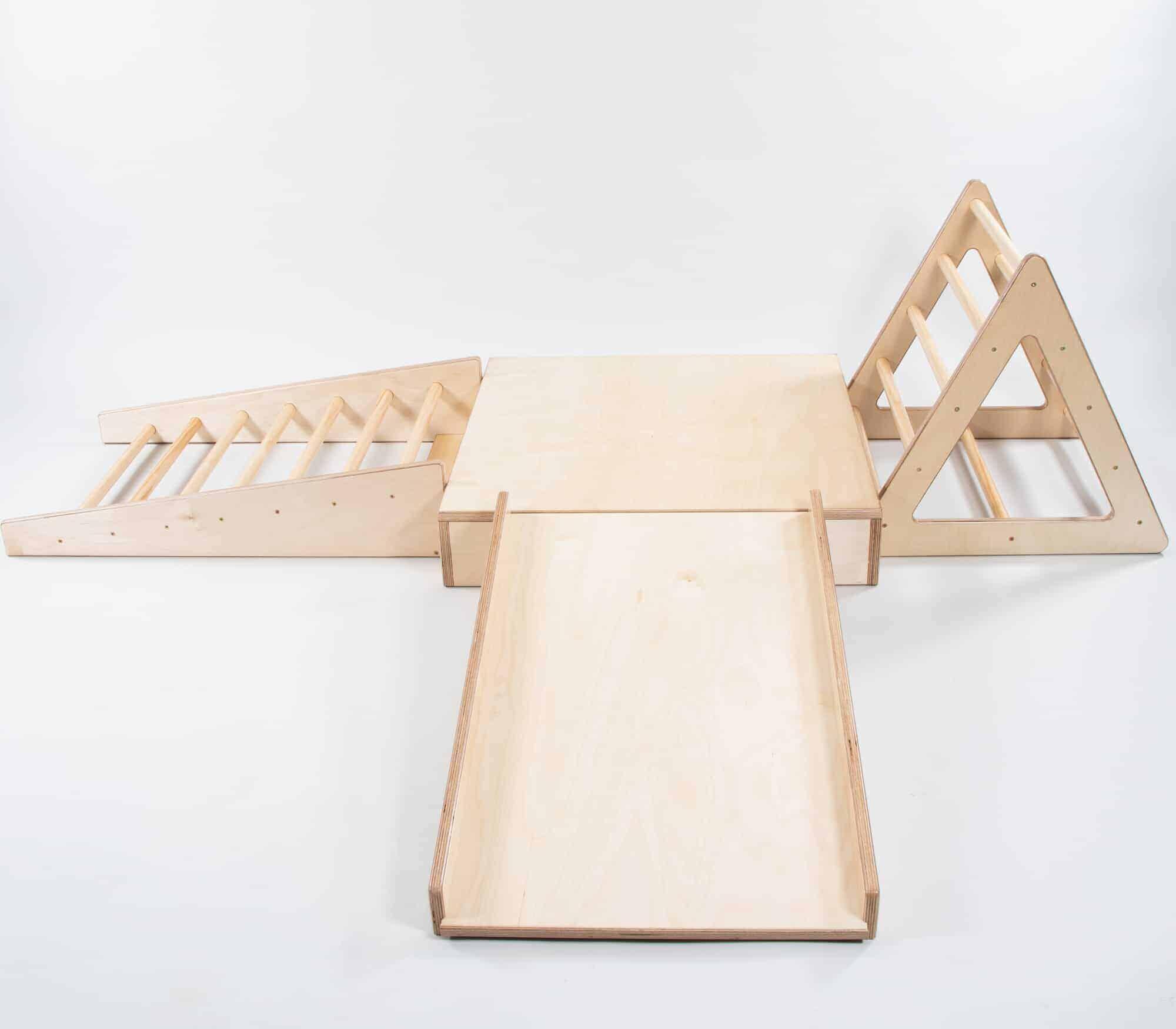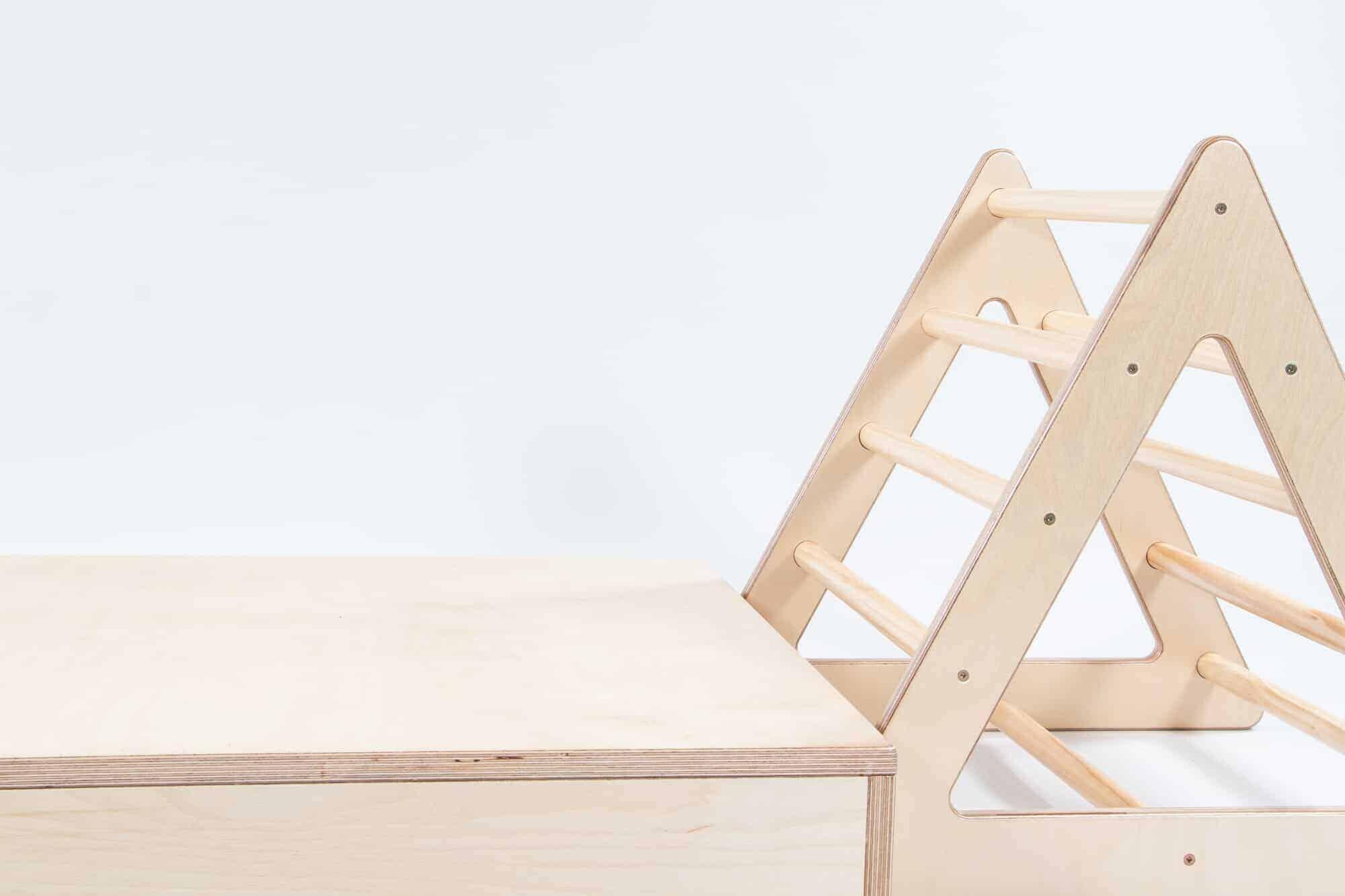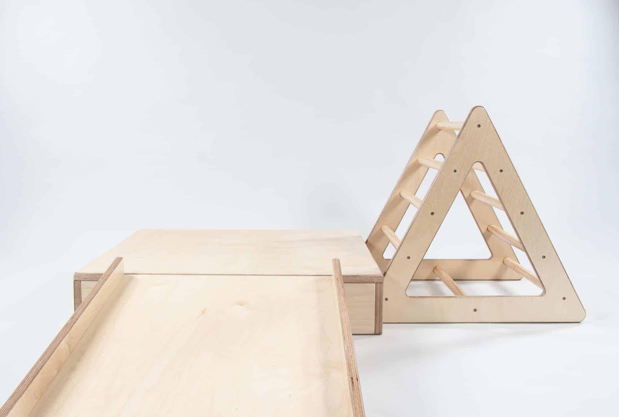 Crafted with Birch Plywood in our NZ Factory, all equipment has been manufactured with the upmost care to ensure smooth and rounded edges for optimum safety for infants to explore and develop in the safest of ways. The materials used ensure this product is of the highest quality and will last for many years in your centre. You can purchase with confidence that this equipment is 100% safe and proven for the littlest people in your care. Tri-Climber Small measurements are 500L x 500W x 140H.