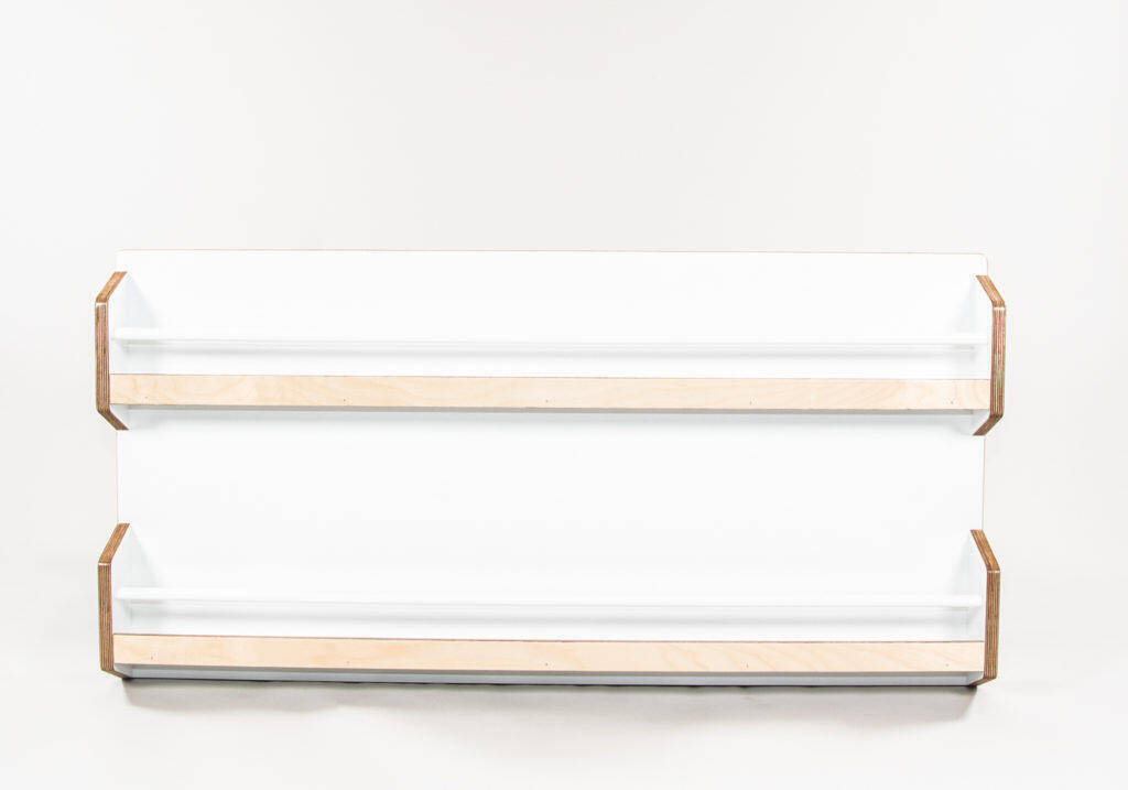 Manufactured by us with laminated European birch plywood and powder coated steel rails. The rails are available in black or white – please contact us for other colour options.