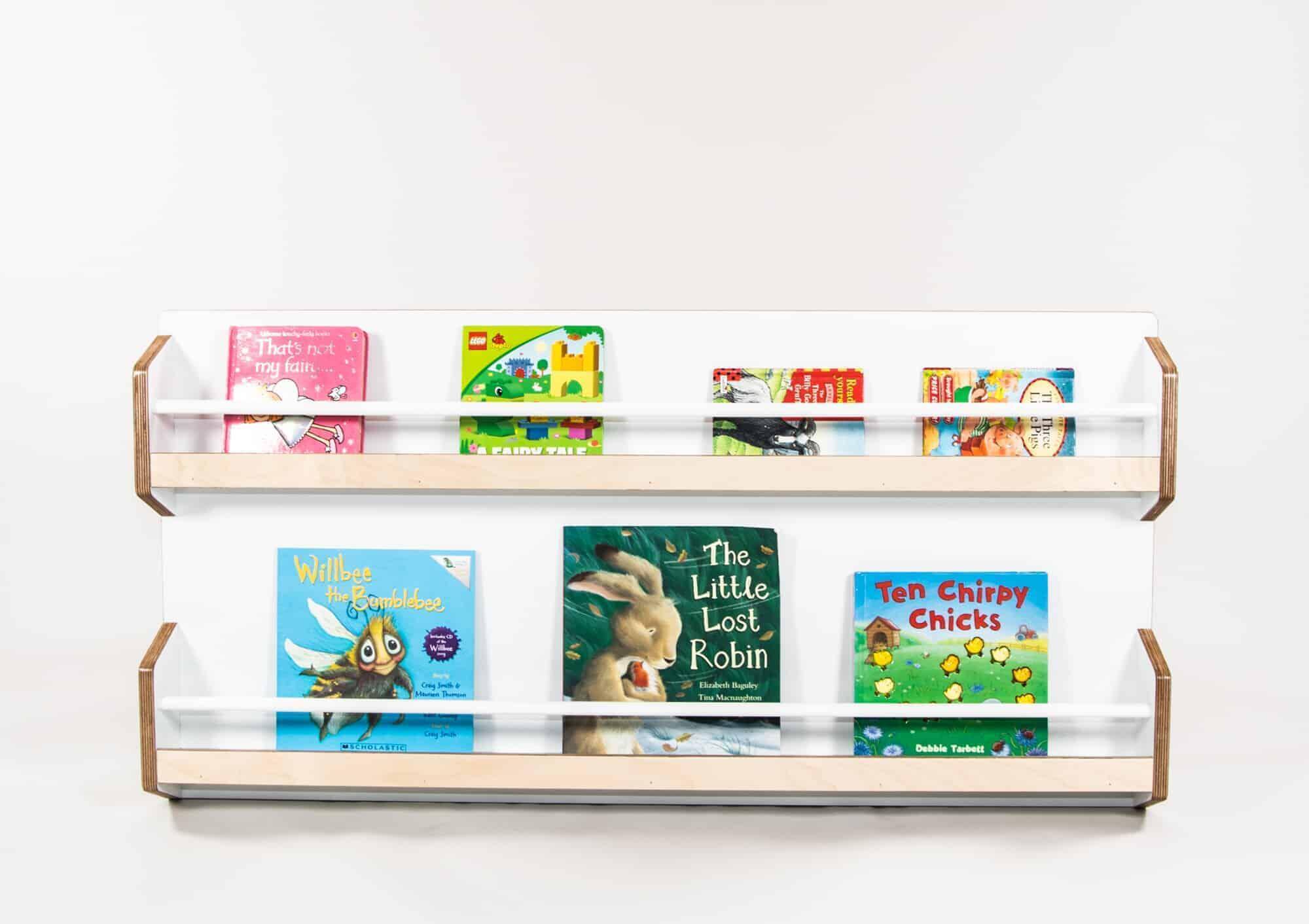 Our Wall Mounted Book Shelving is a cost effective and space efficient option for displaying books. Designed by Elinor.