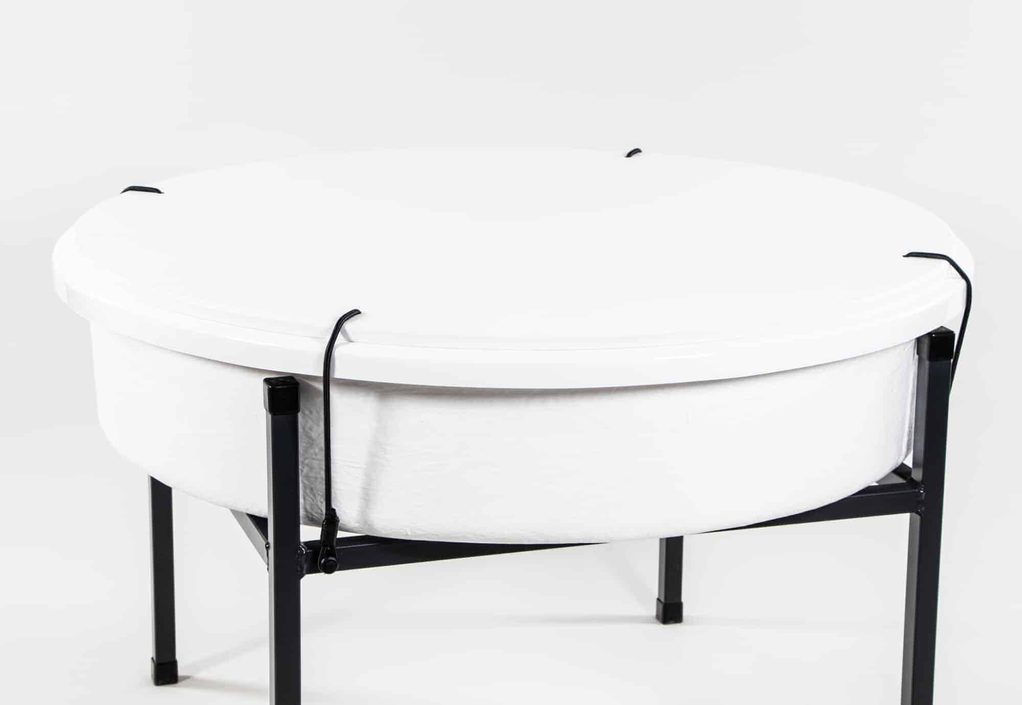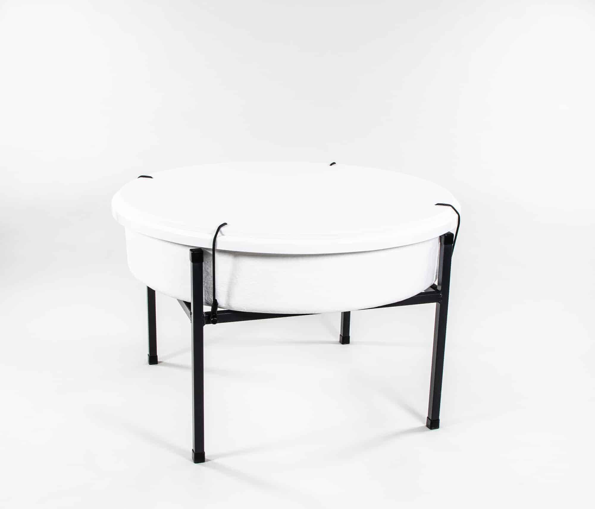 Our 900 Diameter Water Trough with Lid is manufactured using a galvanised powder coated steel frame and a first class quality fibreglass trough which is made locally here in Tauranga.